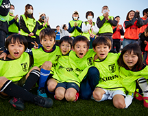 今回は、SAMURAI BLUE(日本代表)もトレーニングに使用する天然芝ピッチを使用し、元日本代表の永島昭浩さん、播戸竜二さん、元なでしこジャパンの宮間あやさん、川澄奈穂美選手(NJ/NY ゴッサムFC)をゲストに招き、参加者と一緒にプレー。世代を超えて家族や仲間の絆が深まるプレーの場面を数多く見ることができました。