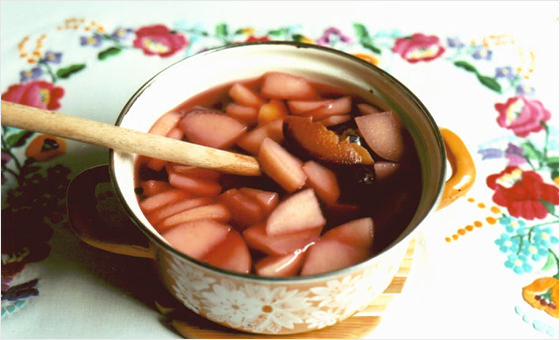 煮込んだ果物と乳製品の組み合わせは、さっぱりし